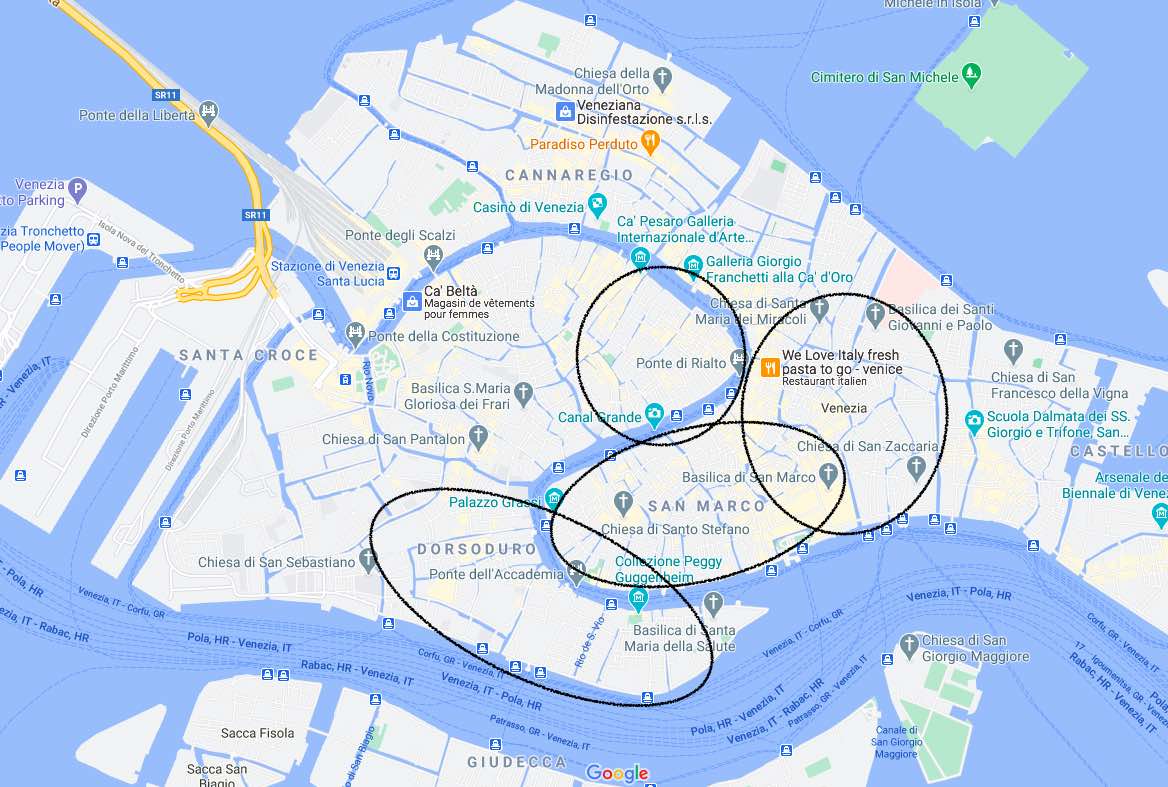 - Dorsoduro, surtout autour du Grand Canal et du pont de l’Académie.